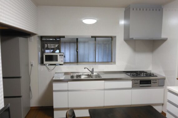 長く使われていた食器や食器棚を処分 吊戸も無くして収納量の多いシステムキッチンに取替